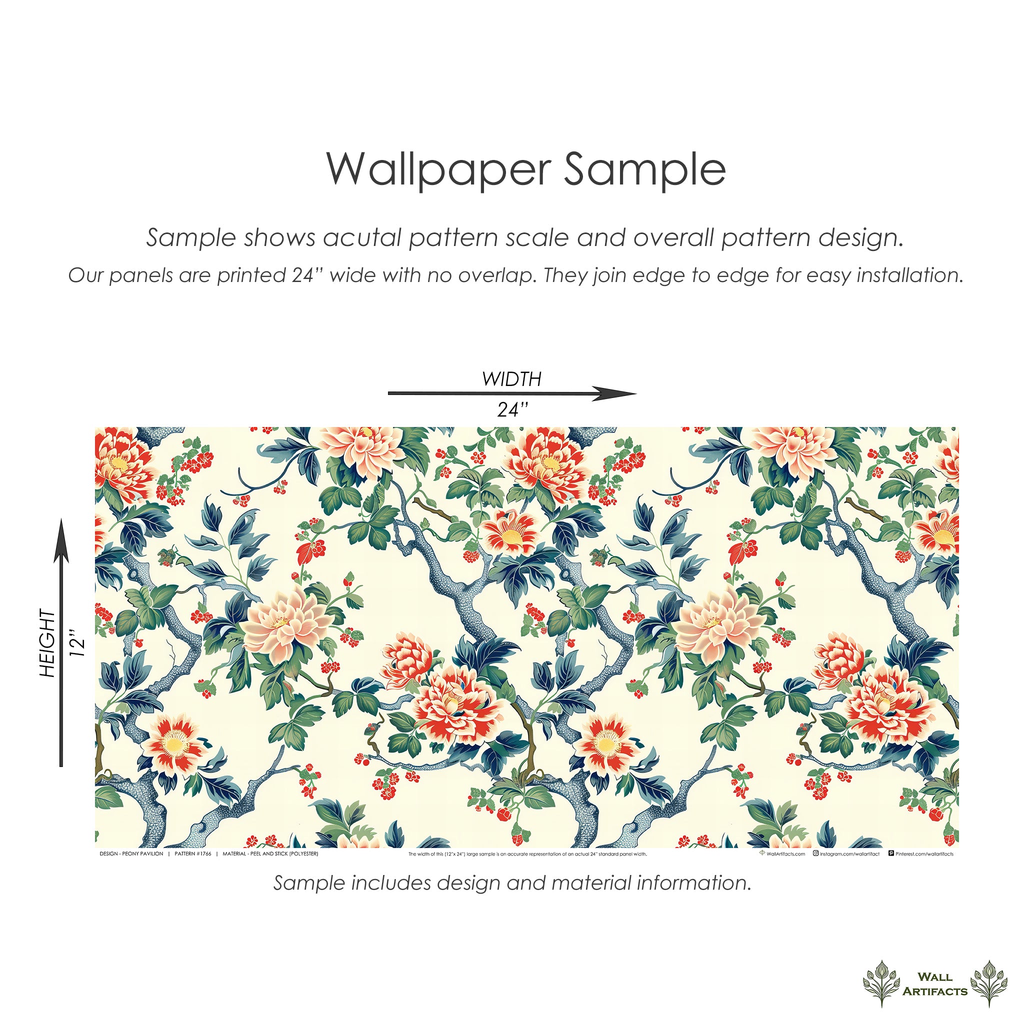Our panels are 24” (2 feet) wide. Unlike most wallpaper rolls where there is approximately 1” of overlap, our panels are printed to the edge, making it easier for self-installation.
