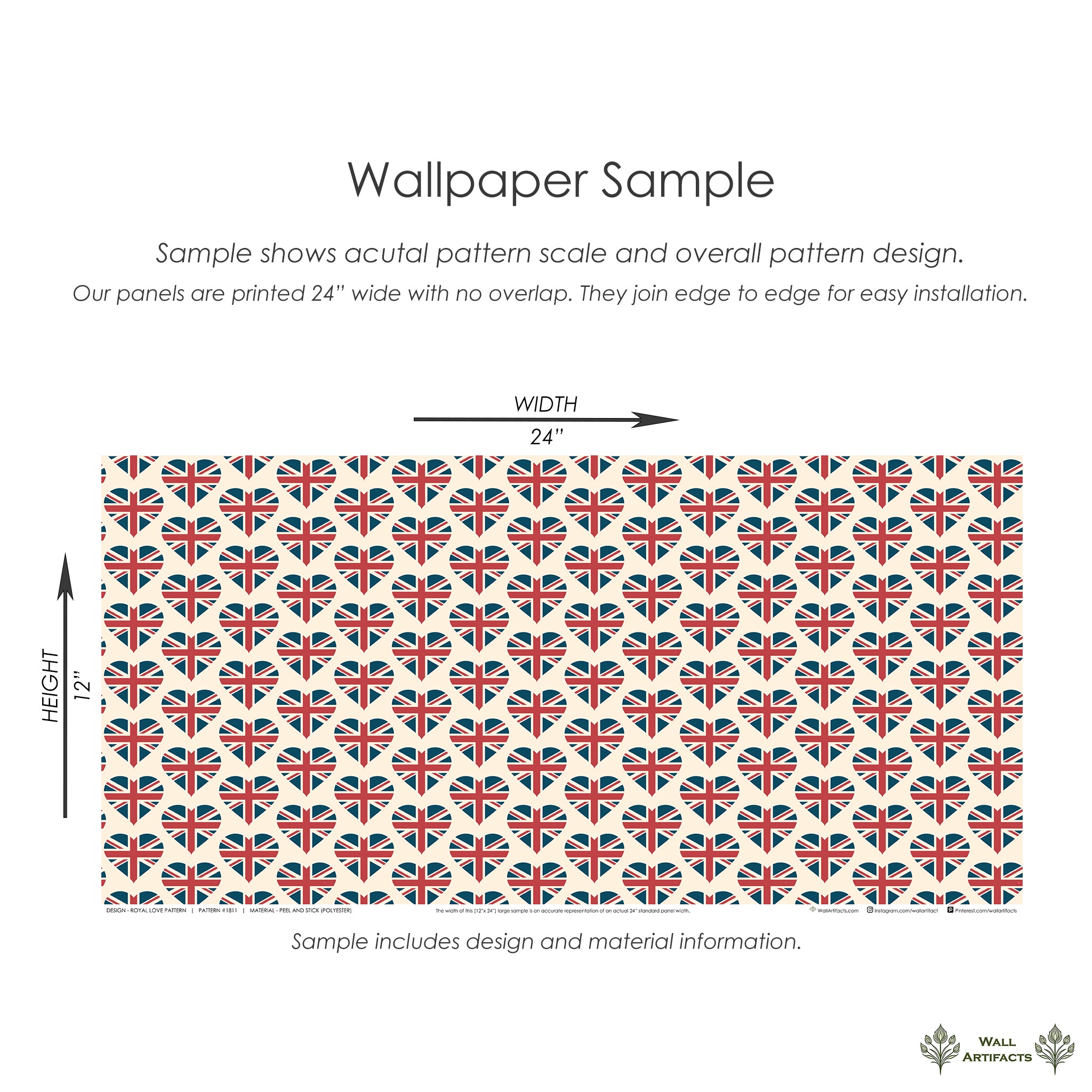 Our panels are 24” (2 feet) wide. Unlike most wallpaper rolls where there is approximately 1” of overlap, our panels are printed to the edge, making it easier for self-installation.